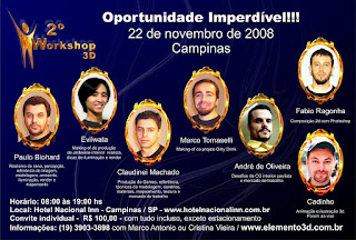 Acesse o site abaixo para ter acesso a todas as informações do evento e ver também fotos do Workshop 2007 onde tivemos a presença do palestrante André Vieira da 3D1, Sergio Feitosa, Jader Palma, Nelson da TVB e muitos outros.